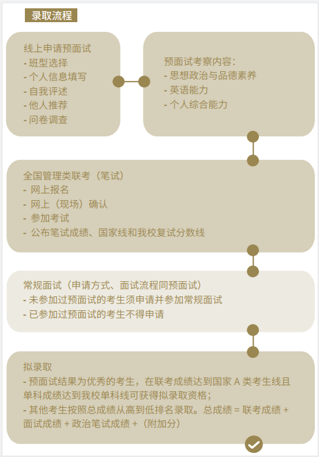 2. 如預面試后有轉班需求,必須在聯考報名前參加轉班面試,且面試成績以轉班面試成績為準,原預面試成績予以作廢。具體轉班面試申請信息請留意官網和本公眾號通知;