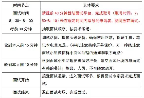 申請(qǐng)者具體面試時(shí)間段請(qǐng)關(guān)注后期公布的面試分組安排
