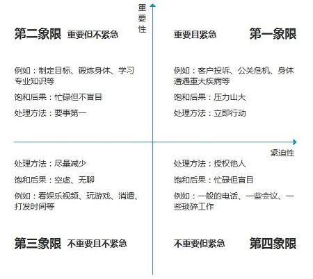 把工作內容按以上四象限來劃分,然后依據緊急或者重要程度有計劃的安排完成工作,時間一長,就不會感覺自己每天都忙忙碌碌,被工作牽著鼻子走。