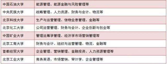 北京地區部分院校MBA方向參考如下: