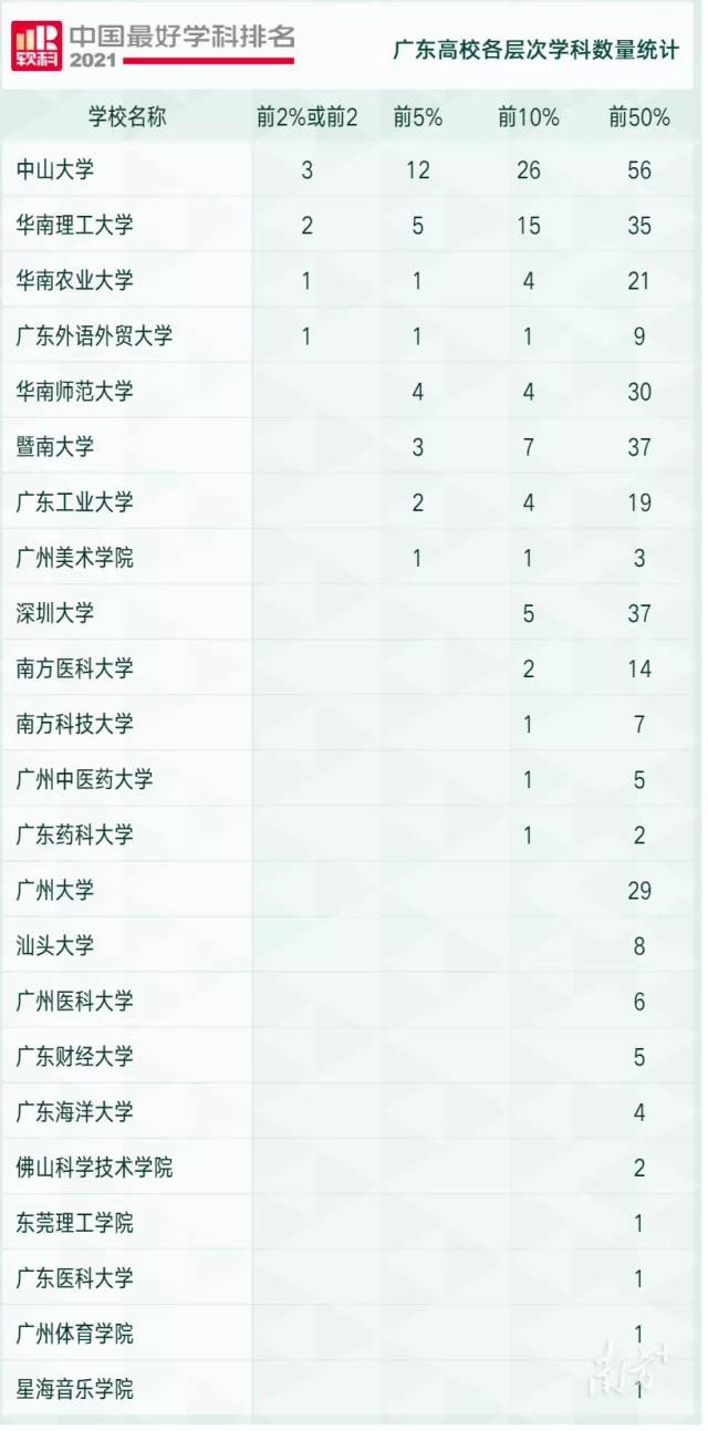同樣表現(xiàn)不俗的高校還有廣州大學、廣東工業(yè)大學、南方醫(yī)科大學,3所學校上榜學科數(shù)分別達到了29個、19個、14個。