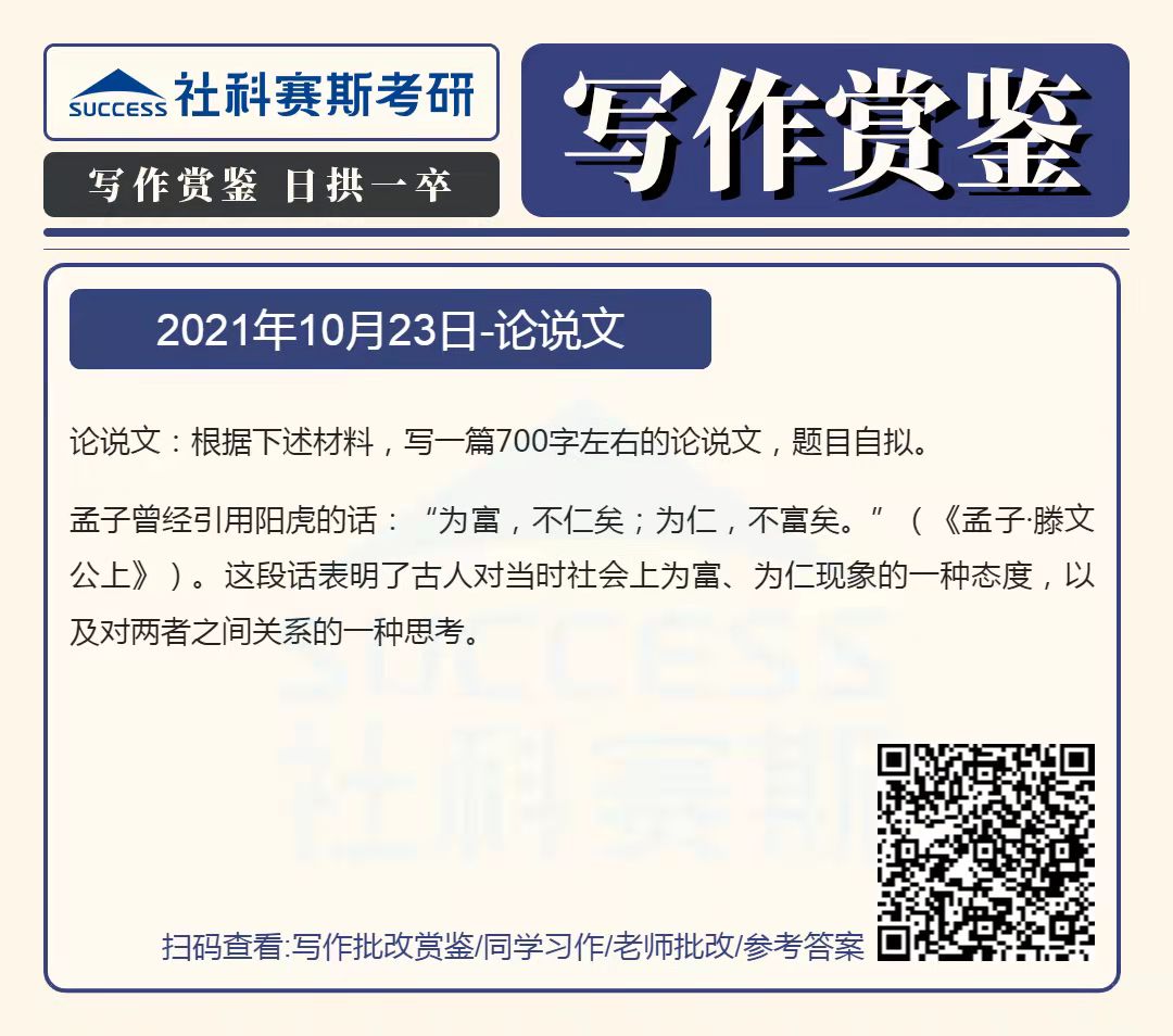 導讀:寫作題型是管理類聯考考試中的必考題型,也是MBA聯考復習中的重要部分,社科賽斯MBA備考網小編整理了“2022MBA寫作:2022MBA聯考寫作批改賞鑒及參考答案(10月23日)”的內容,希望能對廣大考生有所幫助。