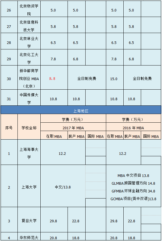 導讀:MBA報考的學費一直是大家關注的問題,貼心的社科賽斯小編為大家整理了2017年全國各大院校MBA的學費匯總表格(更新到6月),供考生參考,更多學費信息敬請期待。