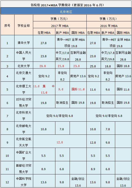 MBA報考的學費一直是大家關注的問題,貼心的社科賽斯小編為大家整理了2017年全國各大院校MBA的學費匯總表格(更新到6月),供考生參考,更多學費信息敬請期待。
