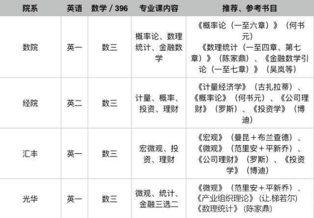 作為頂尖學府之一,考試內容選擇上果然與眾不同!四院可謂各有側重,和而不同。數院重視數學到數學三還不夠,專業課也滿滿都是數理內容,不過好處就是,復習數學三和專業課能齊頭并進,互相促進;經院只考八道大題,走非主流路線,全部是這上述幾門科目的計算題,分布比例每年不定,這就要求對每本書的內容都吃透;匯豐從內容和題型上來講相對比較傳統;光華就比較靈活了,三門內容任選兩門,這樣在復習的時候就能夠集中火力,有所側重了。