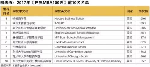 《世界企業家》還同期發布了2017年“世界最具影響力MBA100強”排行榜,哈佛商學院、歐洲工商管理學院、賓夕法尼亞大學沃頓商學院排名前三。主辦方已經連續15年對世界和中國的MBA教育進行測評,今年中國共有10所商學院入選,和去年持平,其中大陸有7所入榜,香港有3所進入百強。引人注目的是,在前10名商學院中,美國共占據了7席,遙遙領先于其他國家,英國有2所,法國有1所入榜。