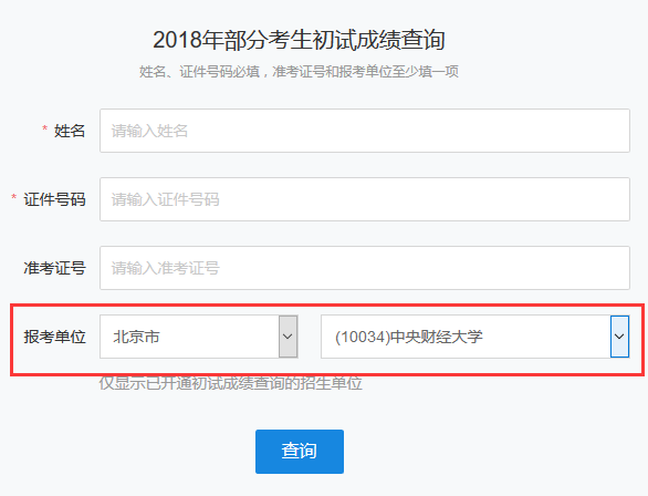以下是中央財經大學,2018年全國碩士研究生考試成績查詢入口(https://yz.chsi.com.cn/apply/cjcx/)