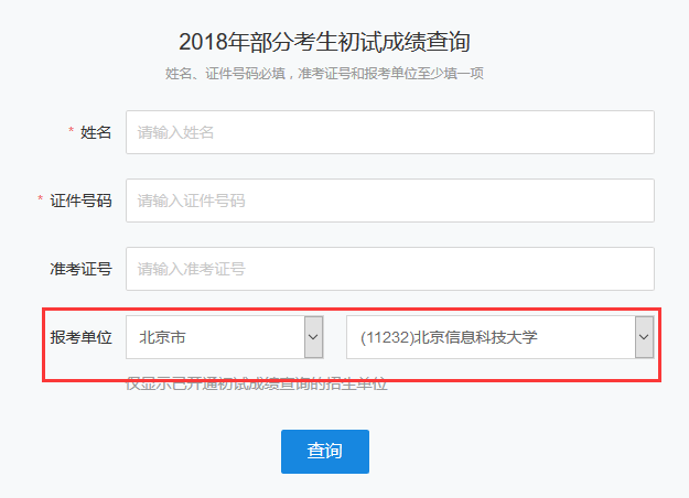以下是北京信息科技大學,2018年全國碩士研究生考試成績查詢?nèi)肟?/span>(https://yz.chsi.com.cn/apply/cjcx/)