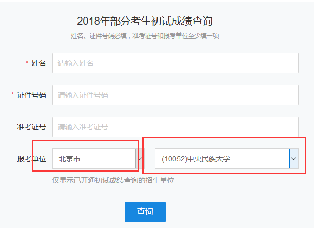 以下是中央民族大學,2018年全國碩士研究生考試成績查詢入口(https://yz.chsi.com.cn/apply/cjcx/)