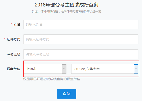以下是東華大學,2018年全國碩士研究生考試成績查詢入口(https://yz.chsi.com.cn/apply/cjcx/)