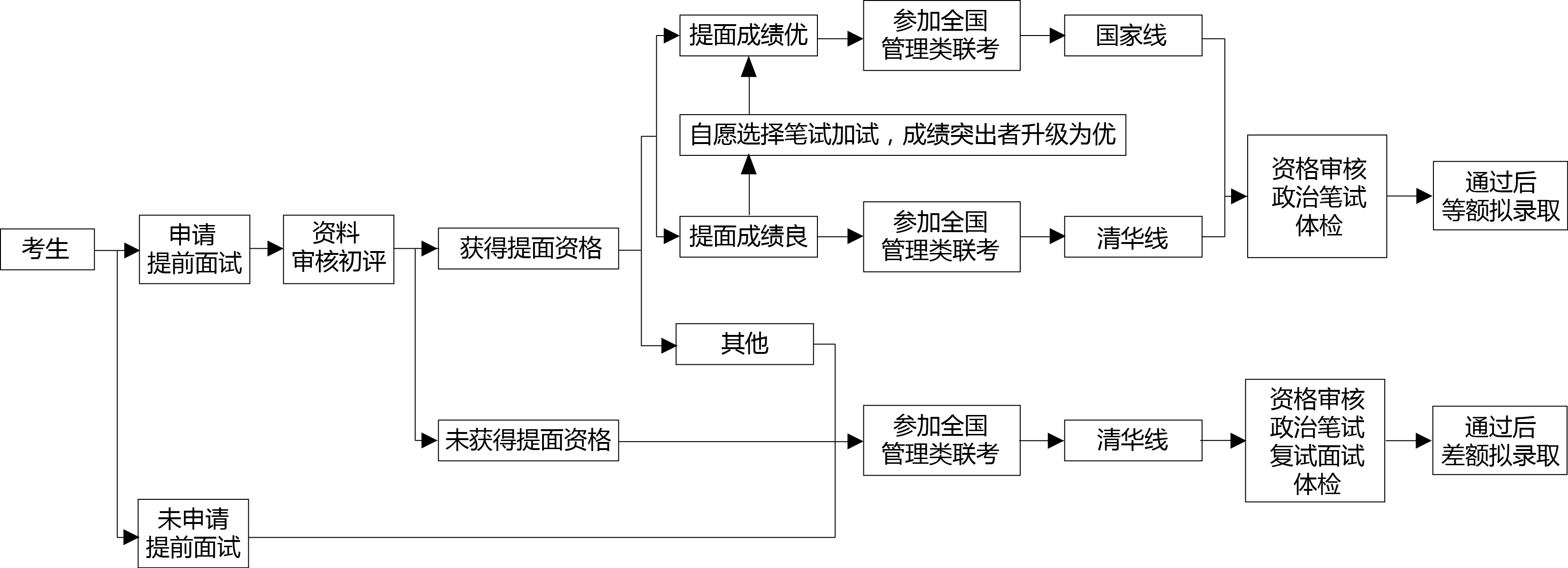 在提前面試中得到成績(jī)“優(yōu)”或“良”的考生在全國(guó)聯(lián)考中分別通過(guò)“國(guó)家線”或“清華線”可獲得復(fù)試資格。通過(guò)復(fù)試,體檢合格的考生將被等額推薦到學(xué)校招生部門進(jìn)行后續(xù)審核和錄取工作。