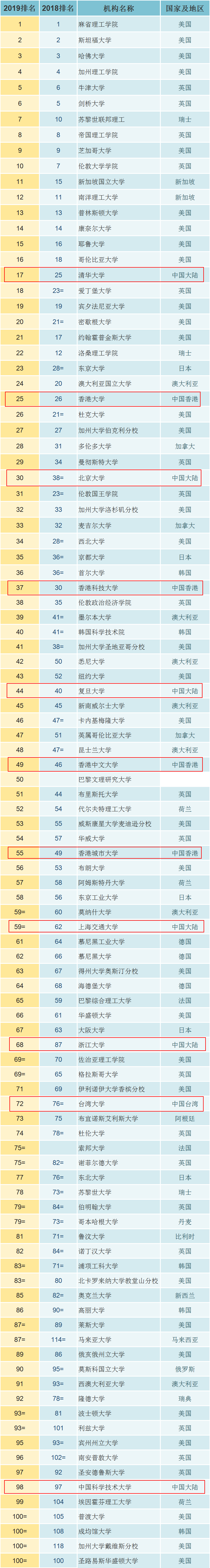 其中清華大學(xué)從去年世界排名25位升至17位,這是中國大學(xué)首次挺進Top20。
