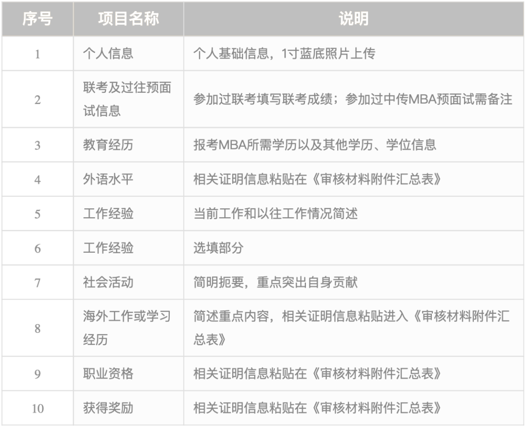 以往參加過中傳MBA預面試的考生,可在填寫“聯考及過往預面試信息中備注“已參加XX年預面試,聯考分數XXX”,會增加你通過材料審核的成功率。