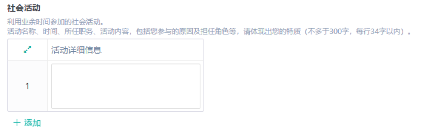 第十步:填寫社會活動(可“添加”多種信息,沒有可不填)