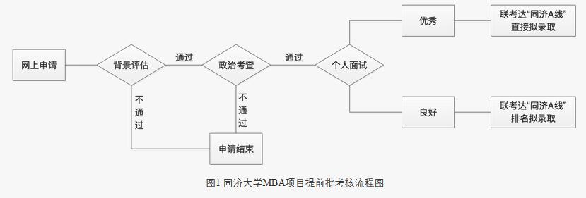 2)良好:凡第一志愿報考同濟大學MBA項目,且聯考筆試成績達到“同濟A線”,按提前批考核成績和聯考筆試成績之和所得的總成績從高分到低分排名擇優擬錄取;