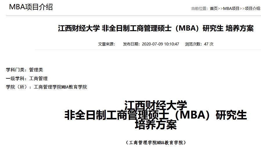 江西財經大學 非全日制工商管理碩士(MBA)研究生 培養方案