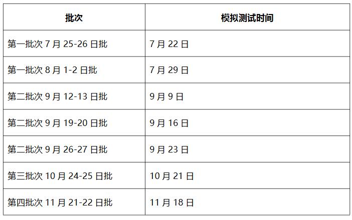 各批次預(yù)面試模擬測試時間表