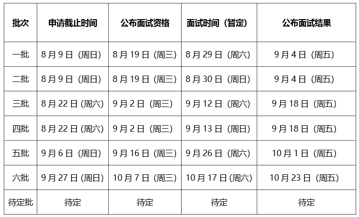 備注:1、在線申請報滿為止;安排如有變動,請以后續通知為準;面試形式另行通知;