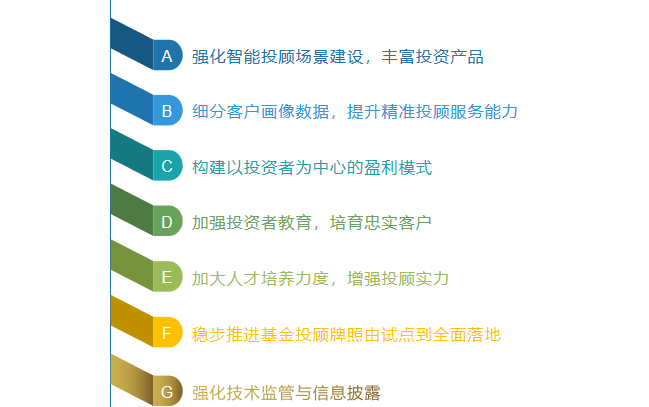 最后,報告對我國智能投顧發展趨勢做出預判,明確智能投顧將依托其低成本、高效率以及多元化場景、便捷化服務成為財富管理業務發展的重要手段,且隨著智能化程度不斷提高,科技賦能程度不斷加深,智能投顧將通過“人+機器”模式為投資者提供有溫度的全生命周期的財富管理服務,通過全智能模式逐漸覆蓋更多長尾客戶,有效提高我國居民財富管理水平。同時,智能投顧市場也將形成少數大型綜合智能投顧平臺、大量差異化精品投顧平臺以及全智能投顧平臺共同發展的格局。