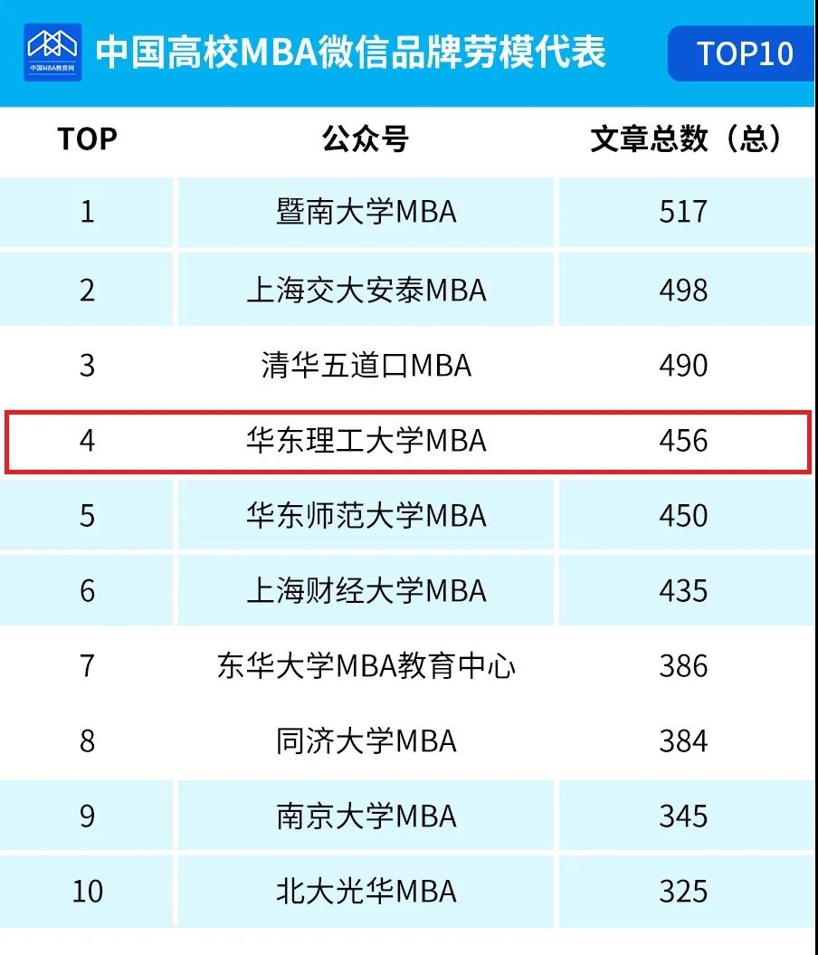 導讀:華東理工大學MBA官微榮獲2020年度中國高校MBA微信勞模榜第4名,微信品牌關注度第9名,微信品牌熱度榜第19名!