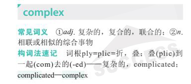 導讀:本期單詞complex ( adj 復雜的,復合的,聯合的;n 相聯或相似的綜合事物)