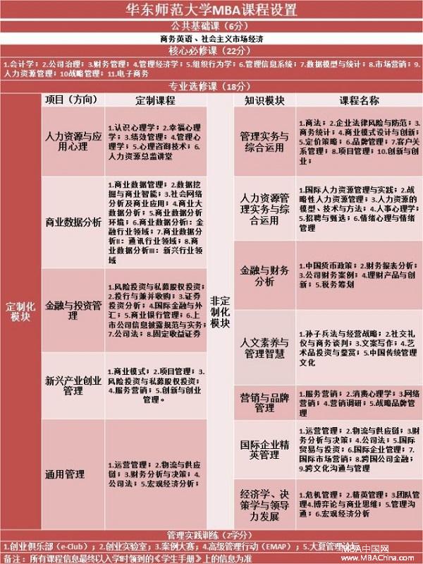 2010年華東師范大學MBA項目入選教育部批準的全國18所MBA綜合改革試點院校,并在2013年以優(yōu)異成績通過教育部和國務(wù)院學位辦驗收。