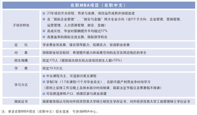 注: 招生信息如有變化,以對外經貿大學研究生院及MBA中心、EMBA中心網站后續公布的信息和實時更新的通知為準。