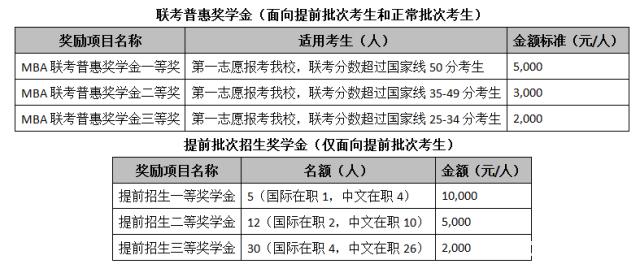 設立MBA聯考普惠獎學金及提前批次招生獎學金,以資鼓勵報考對外經貿大學MBA項目并在全國聯考分數成績優秀、提前批次招生面試表現出色的考生,兩種類別的獎學金可以累加獲得。僅面向國際MBA項目(在職英文)和在職MBA項目(在職中文)兩個子項目,不含國際MBA項目(全日制)和EMBA項目。