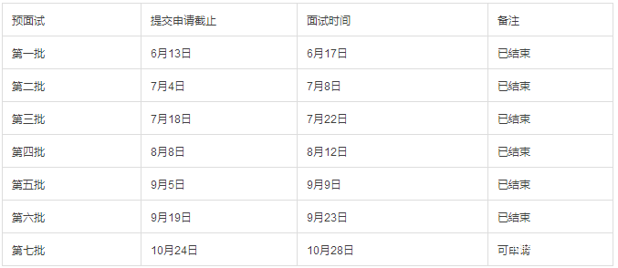 2.資料填寫完整后選擇可以參加的批次進行提交,預面試時間安排如下: