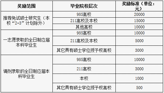 全日制碩士研究生獎學金覆蓋面為60%,一、二、三等分占10%,20%和30%。其中:一等獎學金每生每年10000元,二等每生每年5000元;三等每生每年2000元。推薦免試碩士研究生入學后第一年直接享受一等獎學金。