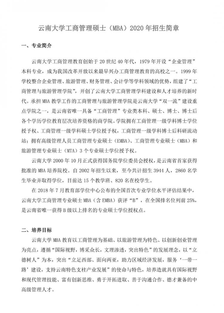 導讀:今天小編給大家整理的是“2020年云南大學MBA(工商管理)招生簡章”的相關內容,有報考意愿的小伙伴要注意下哦!