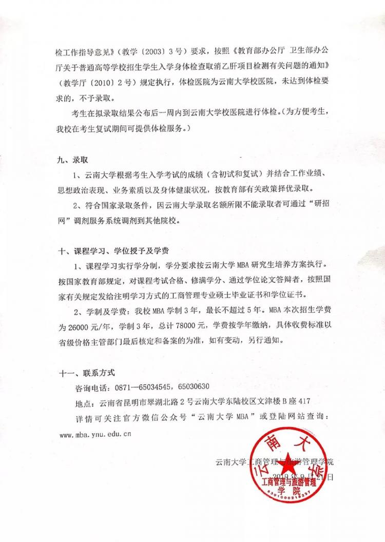 以上就是“2020年云南大學MBA(工商管理)招生簡章”的全部內容!祝您考研成功!
