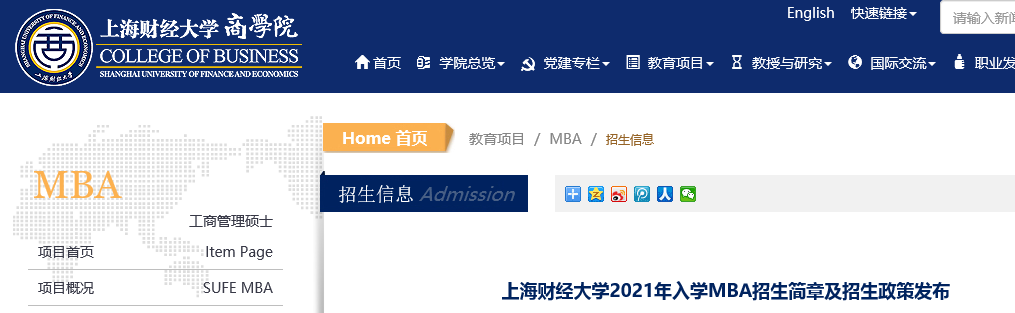 導讀:社科賽斯MBA網小編整理了“2021MBA招生簡章|2021年上海財經大學MBA招生簡章”的相關內容!有相關報考意愿的同學一定要及時關注!