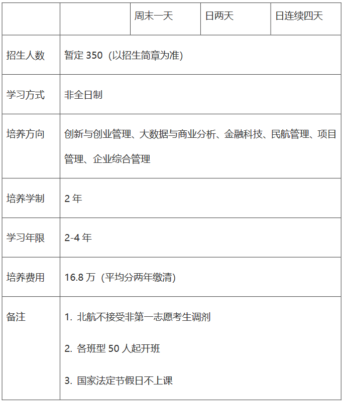 【項目方向】:創新與創業管理、大數據與商業分析、金融科技、民航管理、項目管理和企業綜合管理六大培養方向。
