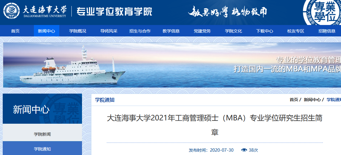 各大院校2021年碩士研究生招生簡章正在陸續(xù)公布!各大院校碩士研究生招生簡章為考生提供了院校招生計劃、報考條件、網上報名及現場確認、資格審查等重要信息。復習備考,信息至關重要!今天,小編整理了“2021MBA招生簡章|2021年大連海事大學MBA招生簡章”的相關內容!有相關報考意愿的同學一定要及時關注!