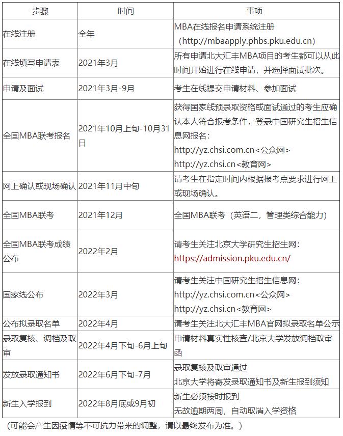 北大匯豐MBA項目2022年招生時間表
