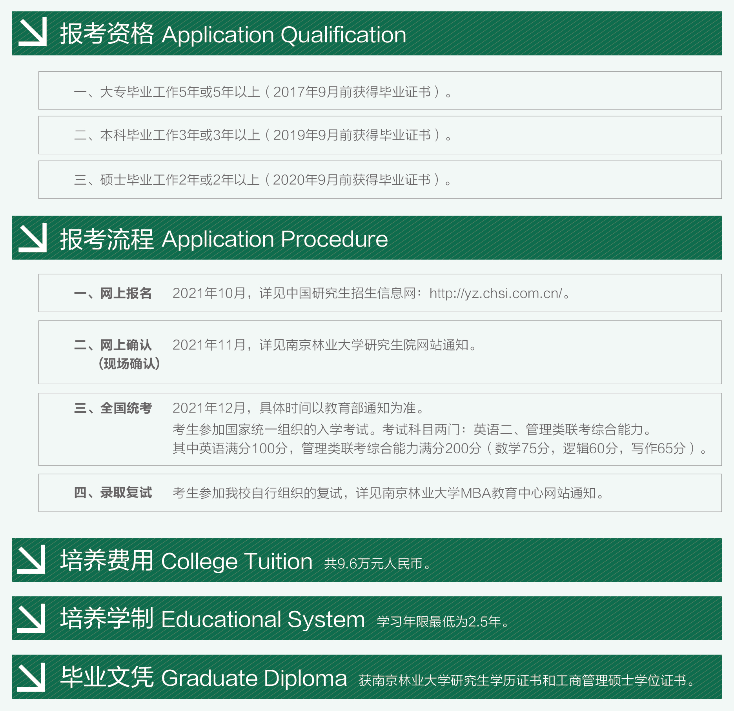導(dǎo)讀:招生簡章是每年考研er需要關(guān)注的重要官方政策,一般情況下涵蓋了各個(gè)專業(yè)的報(bào)考條件、招生名額、學(xué)費(fèi)、學(xué)制、報(bào)考流程等必要信息,為了幫助大家及時(shí)掌握一手信息,迅速做出報(bào)考應(yīng)對,小編今天為大家?guī)砹恕?022MBA招生簡章:南京林業(yè)大學(xué)2022年工商管理碩士(MBA)招生簡章”,希望對報(bào)考MBA的同學(xué)有所幫助!