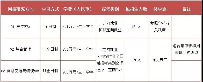 表一:2022年北京交通大學工商管理碩士招生人數及學費標準