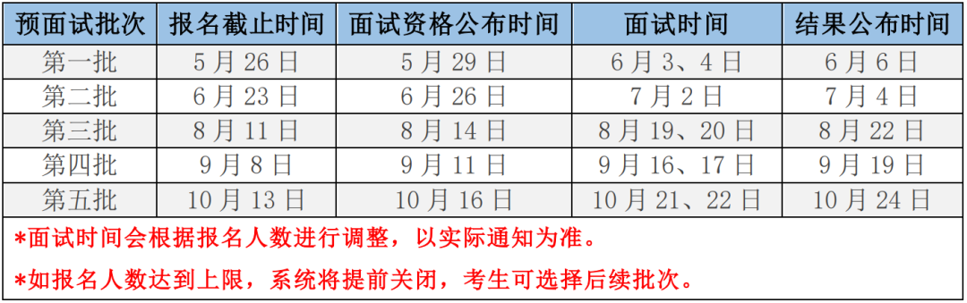 2、考生當年只能參加一次預面試,不允許重復申請、重復參加,但不影響次年的申請和預面試。