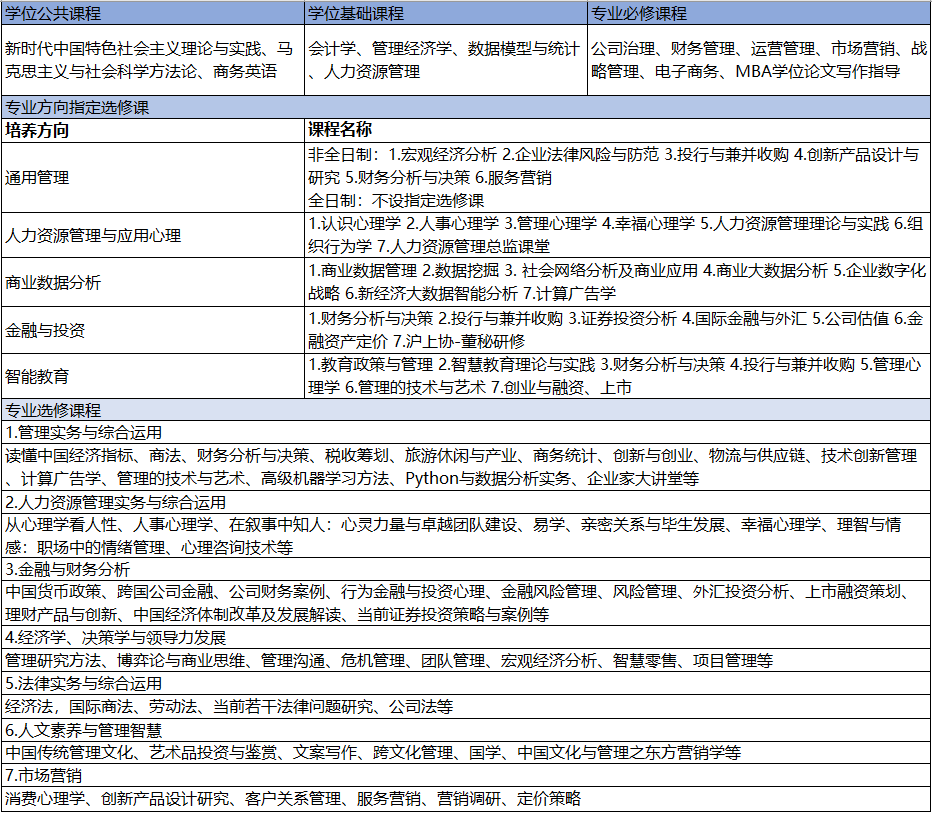 備注:以上課程體系可能根據實際教學情況略有調整,請以MBA教學部當年安排為準。