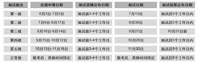5. 在線申請日期對應了面試批次及相關安排,書面材料的審核將統一在面試環節進行。