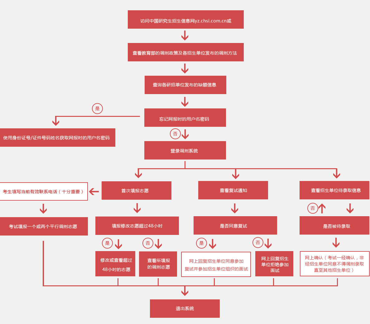 全國碩士生招生調劑服務系統流程圖